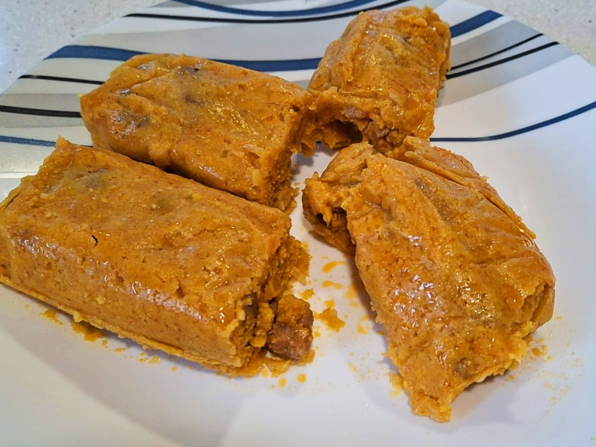 My only memory of mami making tamales was the excessive cursing at spooning the corn and pork mixture into the husk and tying them properly so they wouldn’t fall apart in the pressure cooker. After two separate attempts at making them this way, she gave it up in favor of just making the stew in a pot and not bothering with the whole corn husk process.