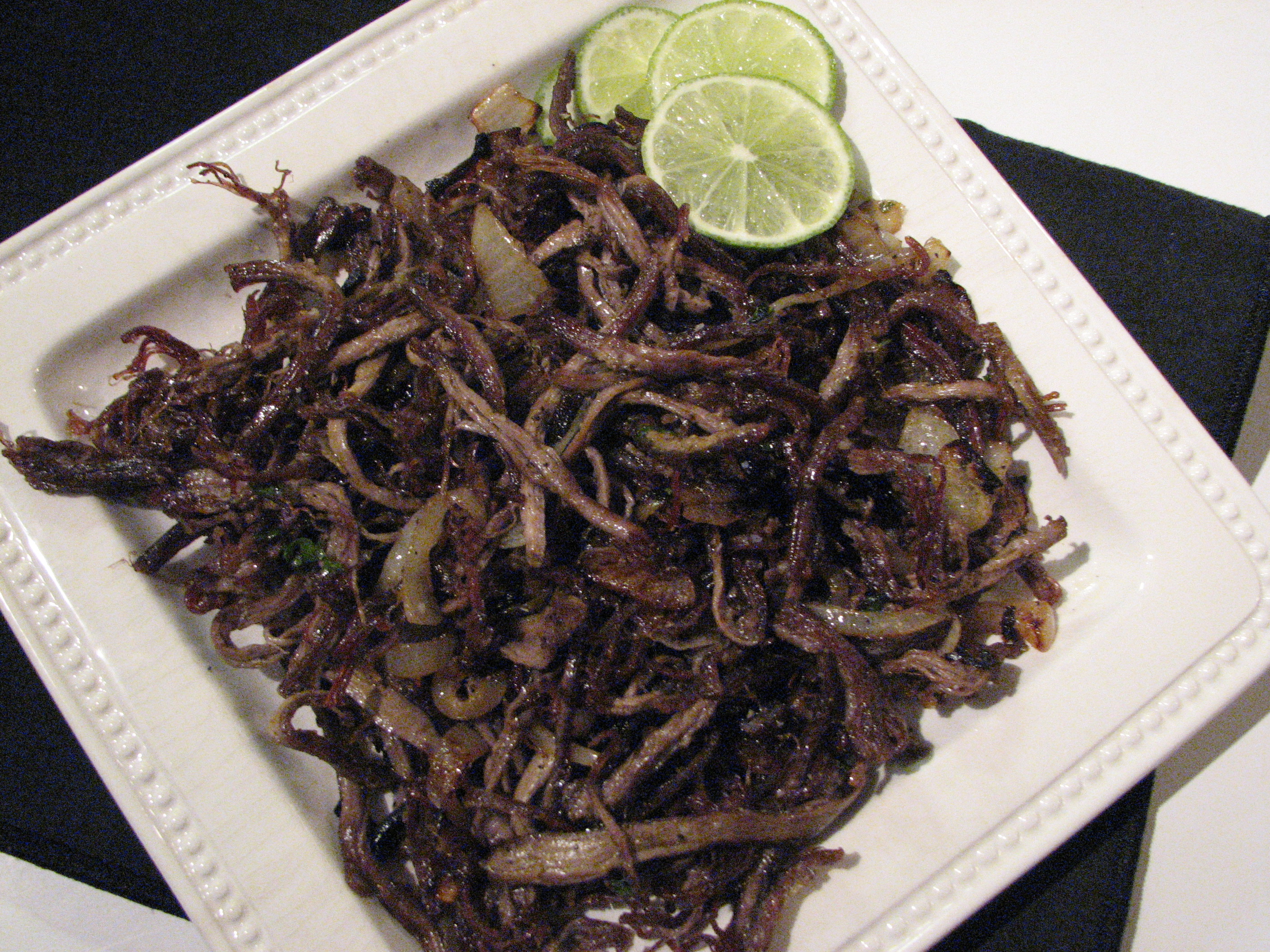 The literal translation for “vaca frita” is “fried cow”, which is not exactly the most appetizing name. However, the fact is that this is one of the tastiest steak dinners in Cuban cuisine. It’s basically a fried flank steak that gets parboiled, shred apart when tender, and then re-fried with onions, garlic, lime juice and some spices. This dish reminds me of my father because he would insist that the chef burned the meat and made it nice and crispy. He always assured the waiter it was ok, he wouldn’t send it back, and I can’t say I blame him; there’s something about the crispy edges that makes it extra tasty. I don’t finish mine off in the same manner that the restaurants do it. Their method is to take the shredded beef and lay it out on a flat grill or pan with a press on top so when it’s toasty, it sort of becomes one unified fried piece. I simply re-fry it up in a large skillet pan and leave it all shredded. I’ve come to learn, it is a favorite dish among several of my friends as well, and it’s not hard to see why: vaca frita is down right delicious. This recipe is strictly mine. I’m sure other people make it their own way, but this is the way I make it and it rivals any restaurant’s.